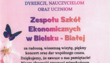 14 kwietnia 2026 r. uczniowie Ekonoma wraz z opiekunami odwiedzili DPS "Dom Nauczyciela" w Bielsku-Białej, gdzie zaprezentowali wiosenny ko...