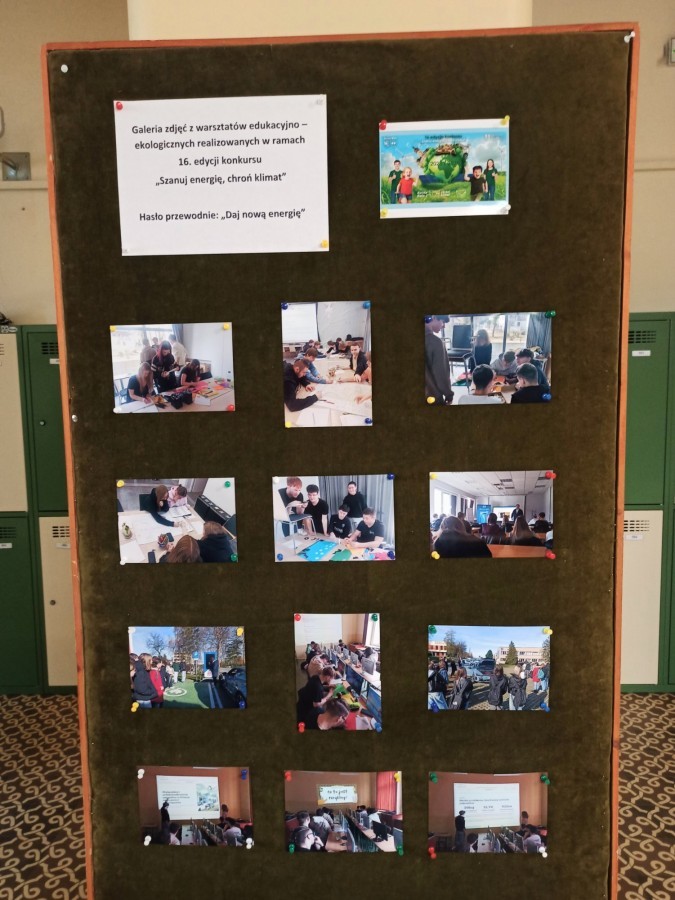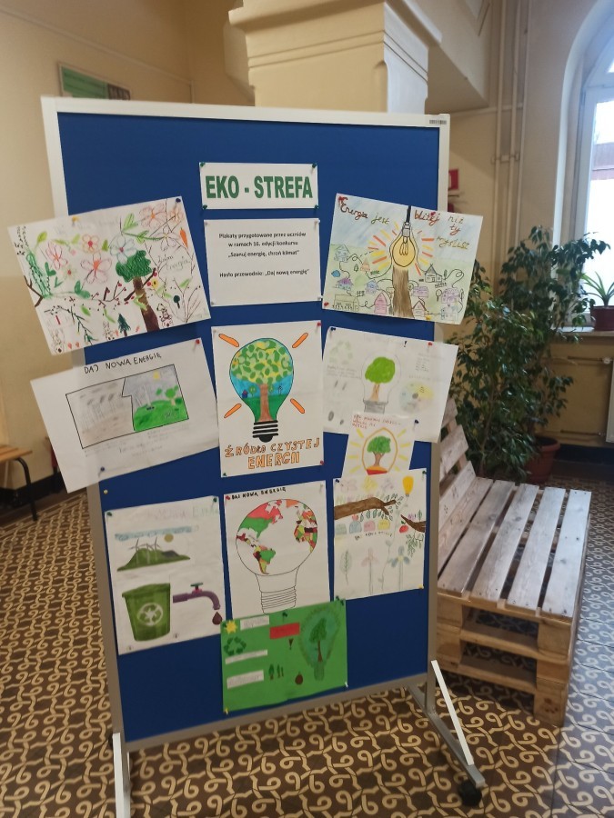 Zwieńczeniem konkursu były Dni Ekologii, które odbyły się w marcu. Ich efektem jest utworzenie eko-strefy, która na stałe wzbogaci przestrzeń naszej szkoły. Można w niej znaleźć m.in. kody QR odsyłające do materiałów o tematyce ekologicznej – aktualnych informacji, ciekawostek oraz treści obalających mity i przedstawiających fakty. Integralną częścią strefy jest także galeria zdjęć dokumentujących warsztaty i spotkania z ekspertami, a także ekspozycja plakatów przygotowanych przez uczniów klasy 3m w ramach realizacji hasła konkursu „Daj nową energię”.