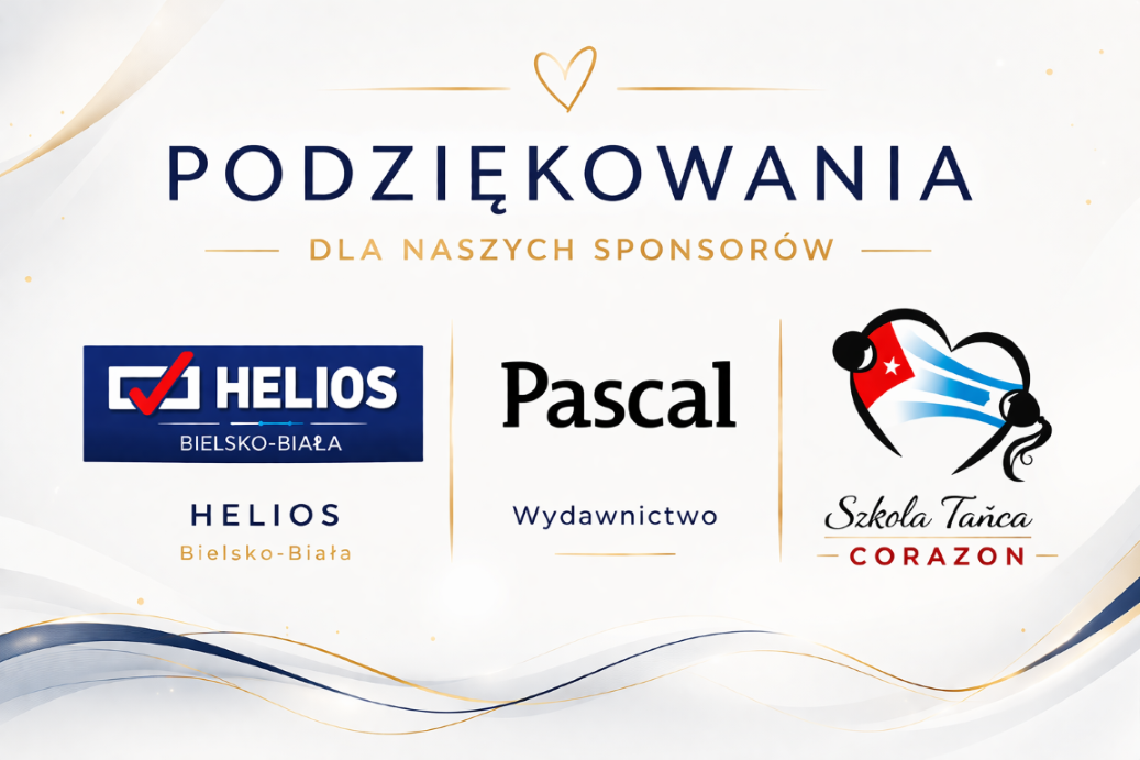 Składamy również podziękowania naszym sponsorom za wsparcie i ufundowanie atrakcyjnych nagród: Kino Helios, Szkoła Tańca Corazón oraz Wydawnictwo Pascal. Dzięki Państwa zaangażowaniu wydarzenie zyskało wyjątkowy charakter.