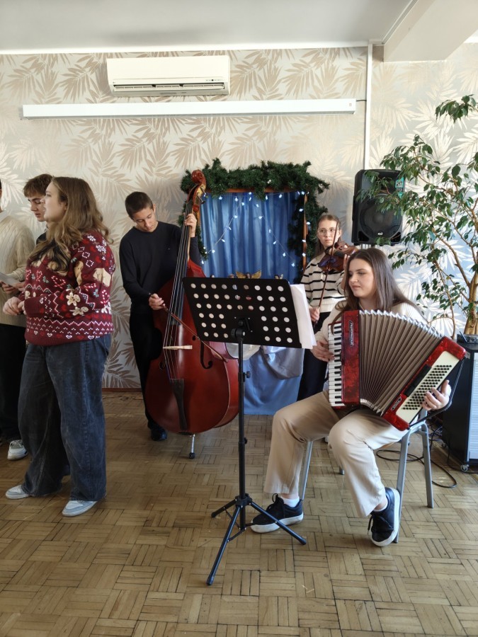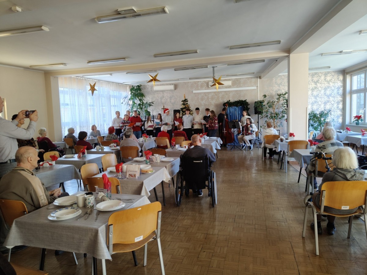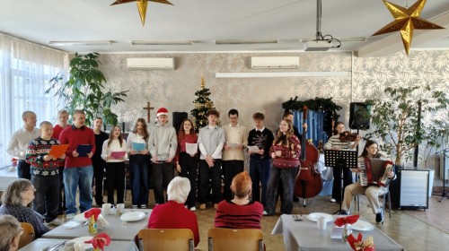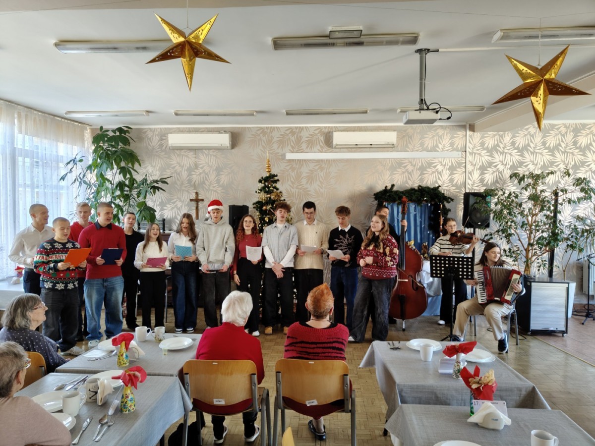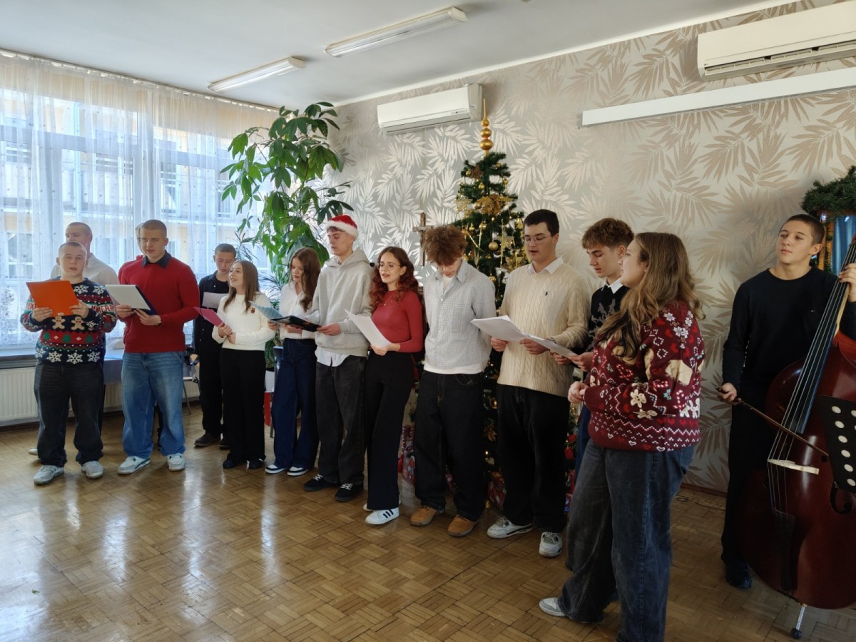 10 grudnia 2025 r. uczniowie naszej szkoły z kółka muzycznego i reprezentanci klasy 2ehr odwiedzili w ramach akcji charytatywnej Dom Pomocy Społecznej „Dom Nauczyciela” w Cygańskim Lesie, aby wspólnie pokolędować i przekazać mieszkańcom najserdeczniejsze życzenia świąteczne. Był to czas pełen uśmiechu, wzruszeń i pięknych chwil zarówno dla młodzieży jak i dla seniorów, które na długo pozostaną w pamięci.
