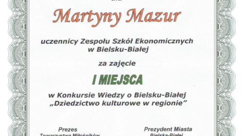 Nasze uczennice laureatkami Konkursu Wiedzy o Bielsku-Białej
