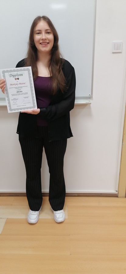Wśród laureatów, tradycyjnie już znaleźli się uczniowie naszej szkoły. W tym roku Martyna Mazur z klasy 4r została zwyciężczynią Konkursu zdobywając (już po raz drugi z rzędu!) 1. miejsce w kategorii szkół ponadpodstawowych, a Patrycja Dec klasy z 4r uplasowała się tuż za podium zdobywając 4. miejsce.