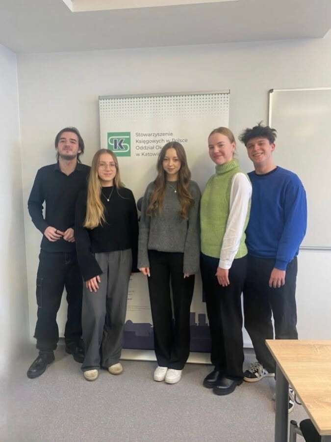 14 stycznia 2026 r. grupa uczniów (uczących się w zawodzie technik rachunkowości) z klasy 5hr: Joanna Pinkosz, Kinga Bronikowska, Gabriela Gazda, Wojciech Chromik i Bartosz Krzempek reprezentowała naszą szkołę na etapie okręgowym Olimpiady "Rachunkowość w biznesie".