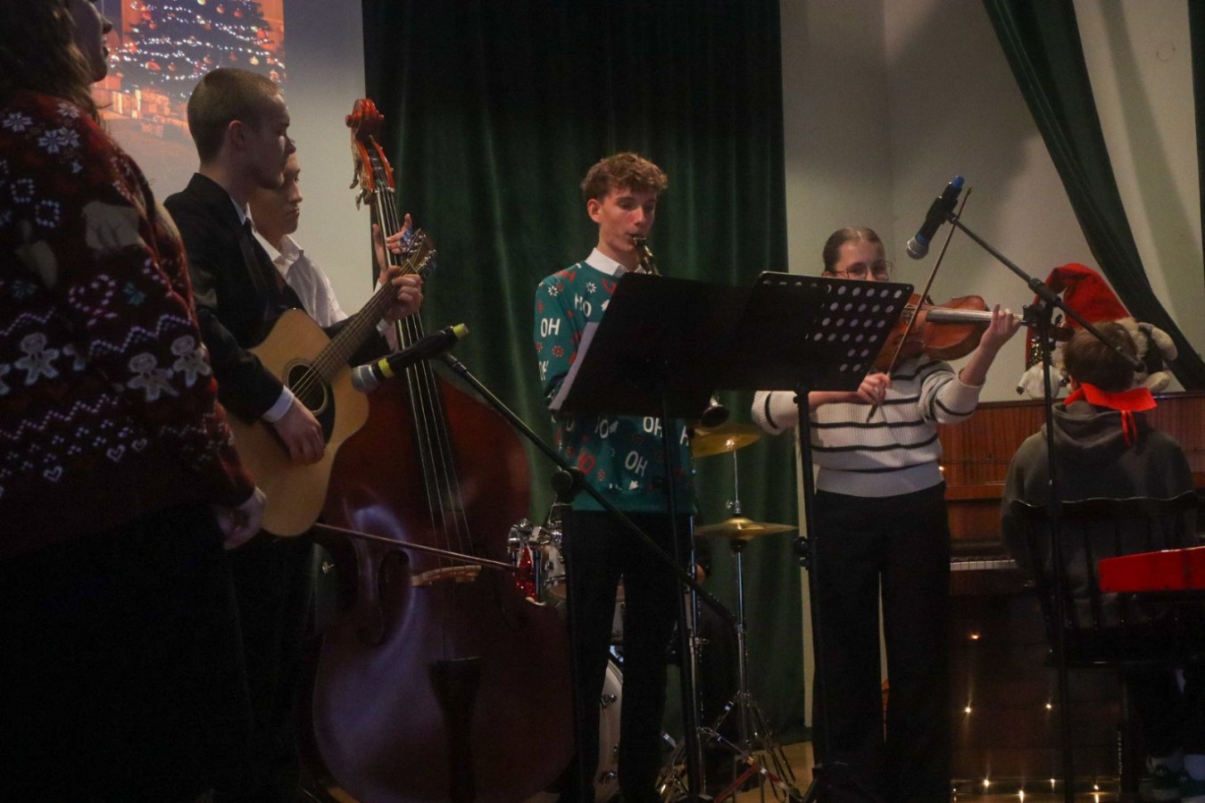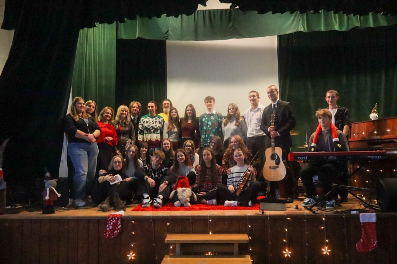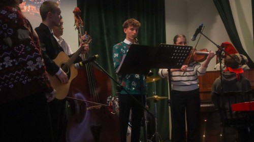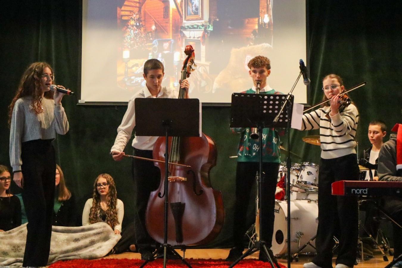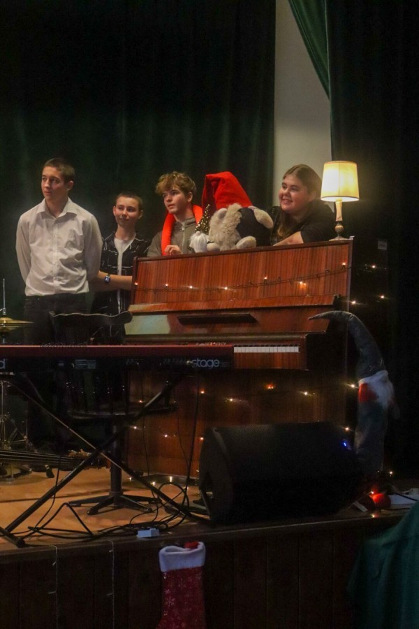 W czwartek 18 grudnia 2025 r. w naszej szkole odbyła się uroczysty koncert z okazji świąt Bożego Narodzenia. Wszyscy uczniowie zebrali się w auli, aby obejrzeć przygotowany program artystyczny przygotowany przez kółko muzyczne pod opieką pani Agnieszki Gregorczyk-Sinkowskiej we współpracy z panem Michałem Wątrobińskim. Podczas koncertu uczniowie śpiewali i grali świąteczne piosenki. Występy były bardzo dopracowane i doskonale zaplanowane. Panowała miła, radosna atmosfera, a publiczność nagradzała wykonawców gromkimi brawami. Dzięki temu świątecznemu koncertowi mogliśmy poczuć magię świąt i spędzić wspólnie miły czas.