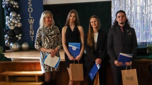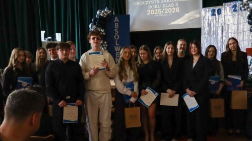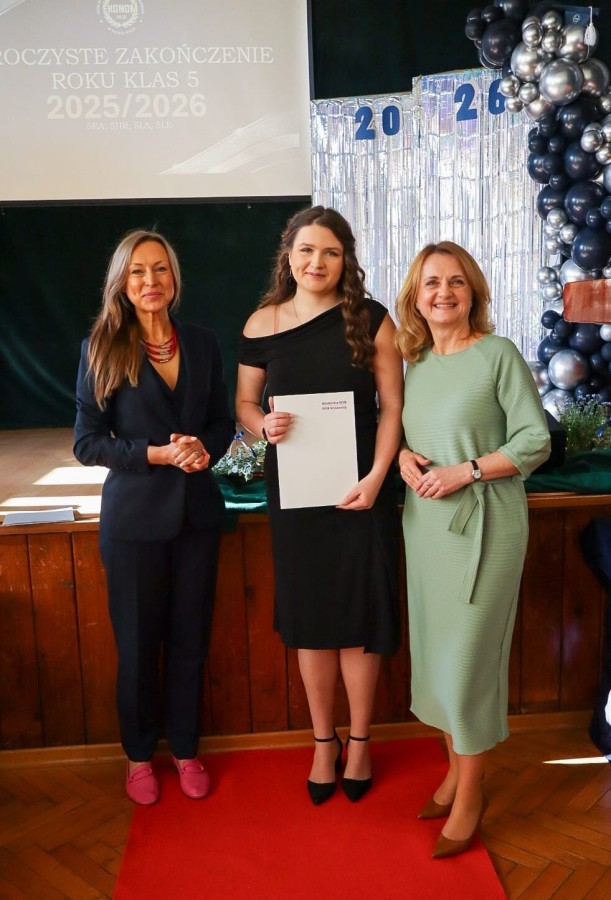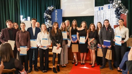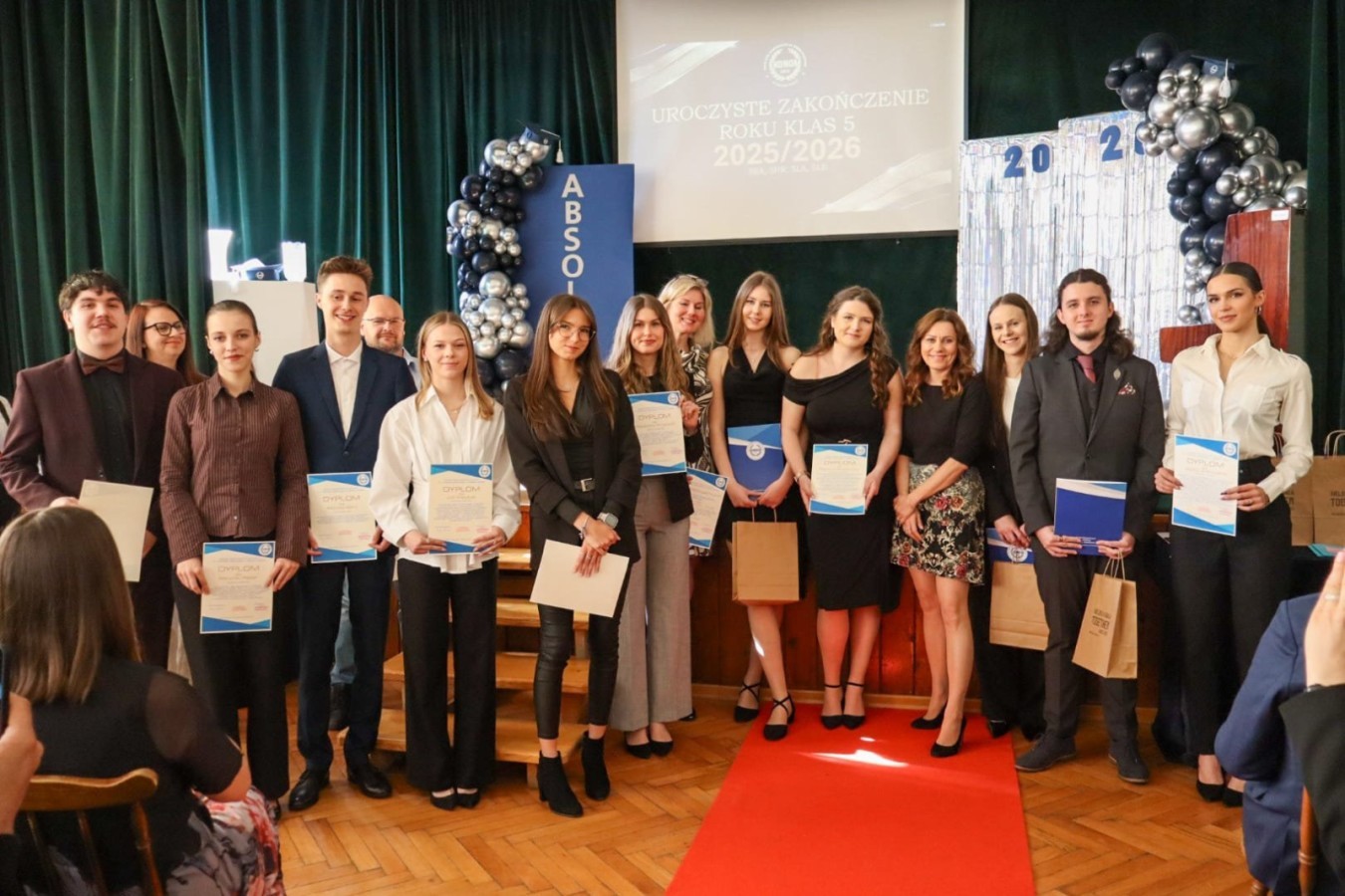 18 pi膮toklasistów odebra艂o z r膮k Pani Dyrektor Marzeny Grzegorczyk i swoich wychowawców 艣wiadectwa z wyró偶nieniem. Nagrod臋 za najwy偶sz膮 艣redni膮 ocen odebra艂a Julia Wójcik z kl. 5hr. Absolwentk膮 Roku zosta艂a Milena Krupa z kl. 5le, która otrzyma艂a Stypendium im. prof. Ludwika Jachny. Do zaszczytnego tytu艂u Absolwenta Roku byli nominowani te偶: Iga Wrona z kl. 5ea, Wojciech Chromik z kl. 5hr i Jaros艂aw Olma z kl. 5la. Z艂oty Indeks na uczelnie Akademii WSB otrzyma艂a Karolina Kucharczyk z kl. 5le.