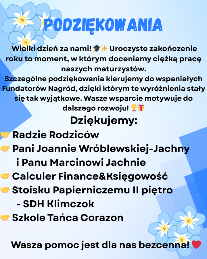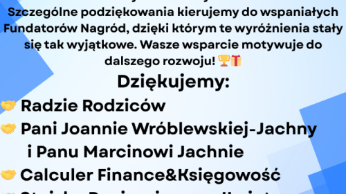 Dzi臋kujemy wszystkim sponsorom i wspó艂pracuj膮cym z nasz膮 szko艂膮 firmom za sfinansowanie nagród dla absolwentów.