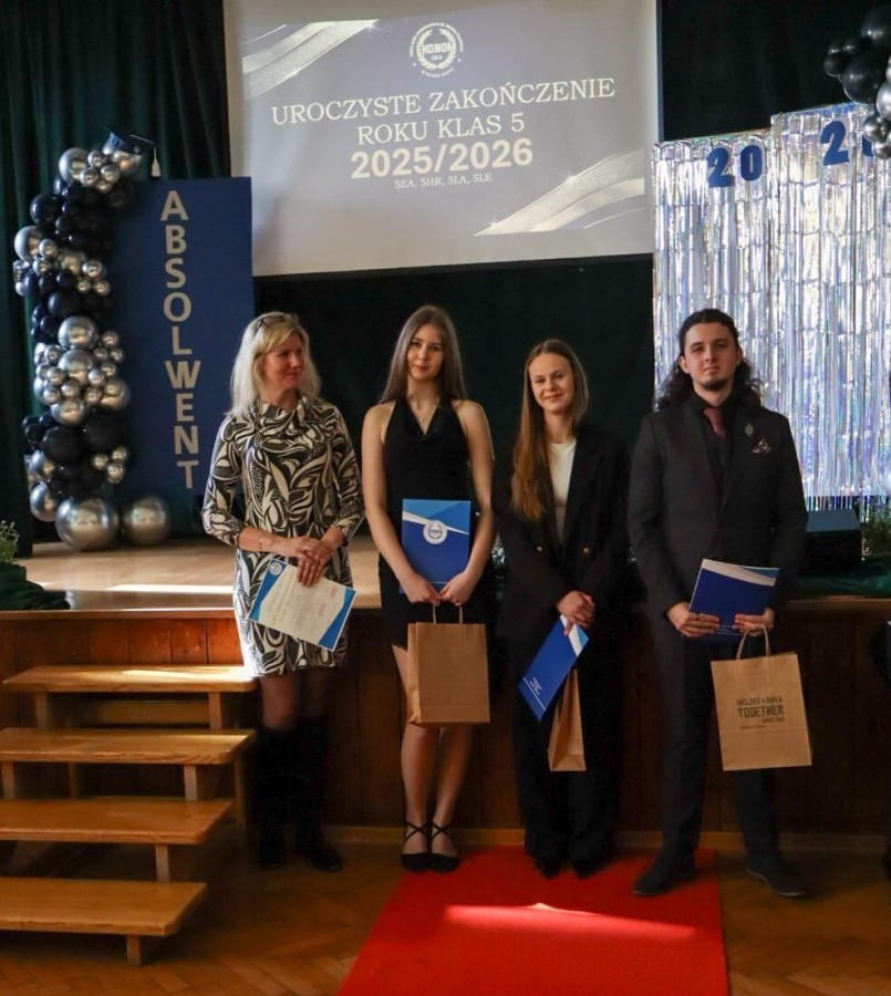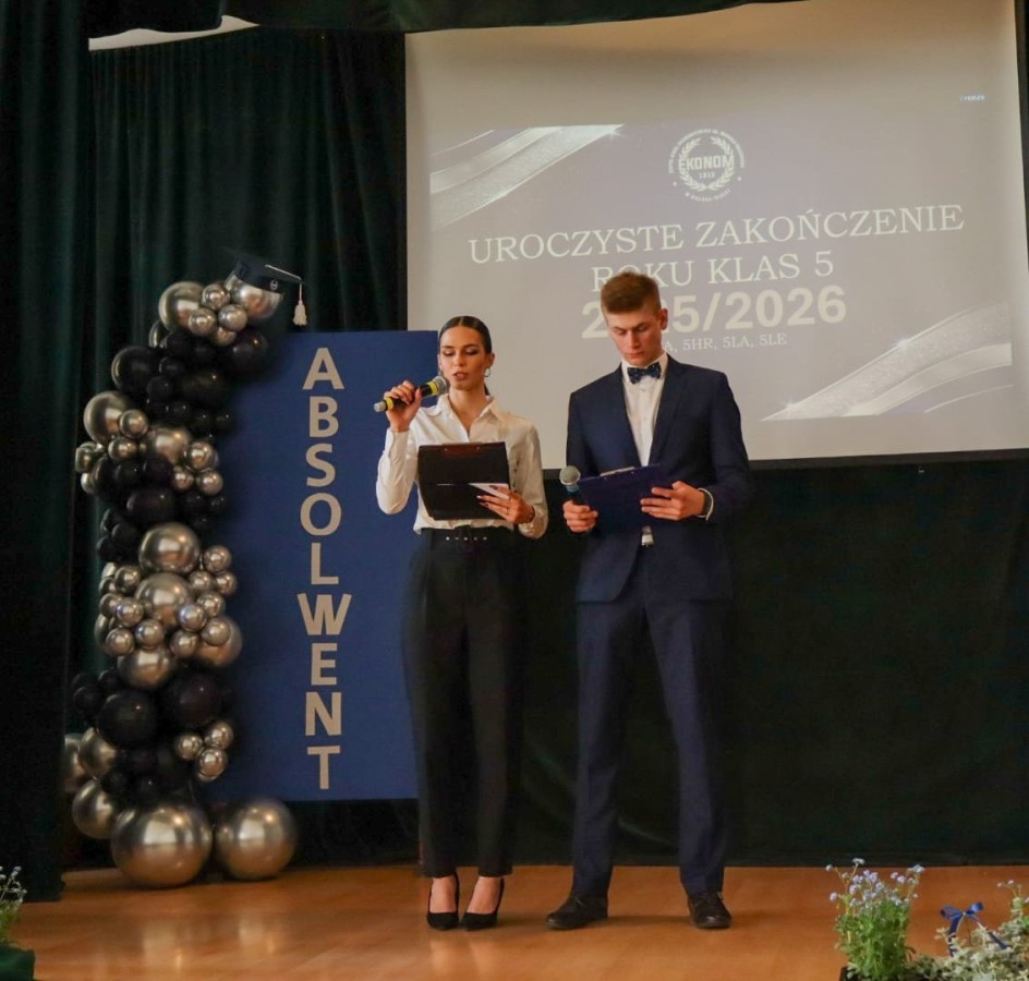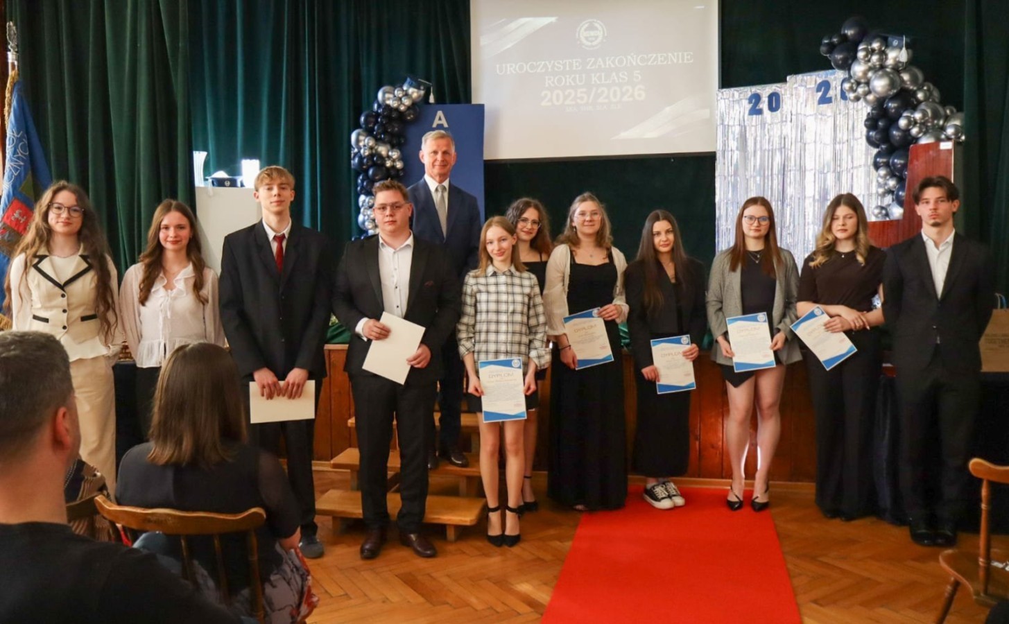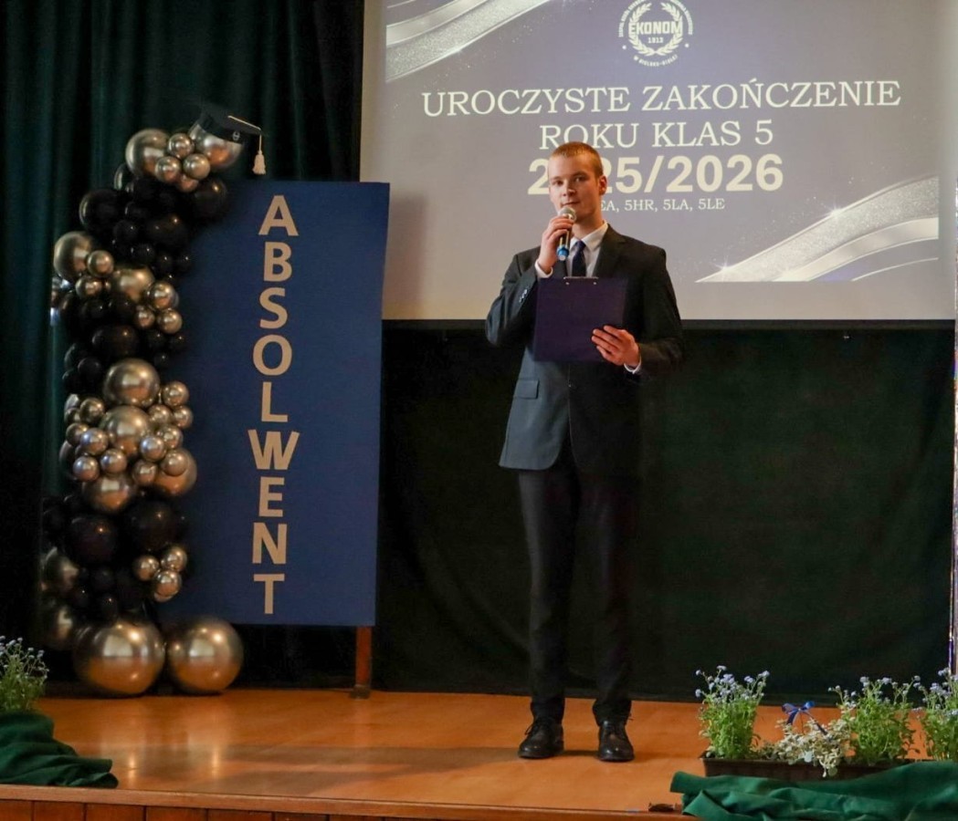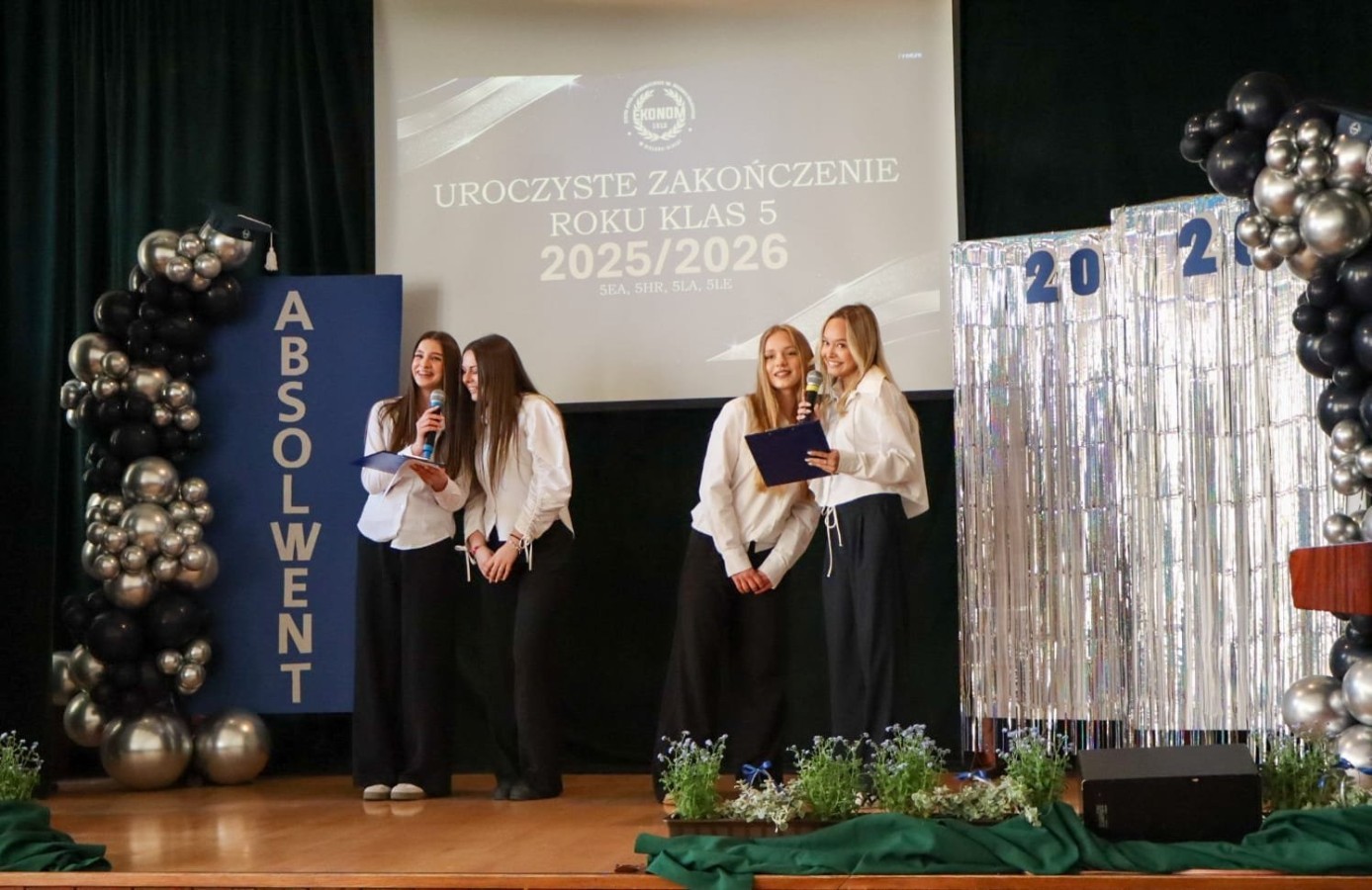 W pi膮tek 24 kwietnia 2026 r. w naszej szkole odby艂o si臋 wyj膮tkowe zako艅czenie roku klas 5-tych, które ju偶 niebawem przyst膮pi膮 do matury. By艂 to dzie艅 pe艂en wzrusze艅, u艣miechów i pi臋knych wspomnie艅. Uroczysto艣膰 zosta艂a przygotowana przez uczniów klas 4-tych oraz opiekunów Samorz膮du Uczniowskiego: Pani膮 Ann臋 Banasik oraz Pani膮 Monik臋 Legie膰-Kwa艣ny.
