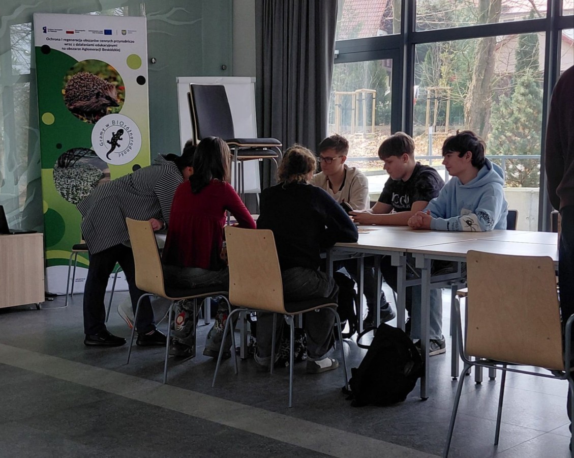 W dniach 4 i 11 marca 2026 r. uczniowie klas 2h, 3h i 3m brali udział w warsztatach edukacyjno-ekologicznych zorganizowanych przez Centrum Edukacji Ekologicznej „Ekosynteza”. Celem zajęć zatytułowanych „Zmiany klimatu i ich wpływ na utratę różnorodności biologicznej” było wprowadzenie do tematu zmian klimatu, ich skutków oraz sposobów przeciwdziałania. Uczestnicy uzyskali wiedzę, jak klimat wpływa na ludzi i przyrodę oraz co każdy może zrobić, by przygotować się do prognozowanych zmian. W części praktycznej uczniowie stworzyli kampanię medialną na rzecz klimatu i filmy w technice poklatkowej prezentujące skutki jego zmian.